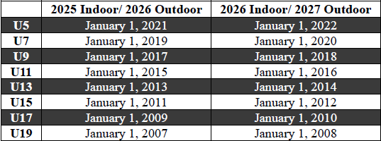 Birthdate Requirements for Age Groups